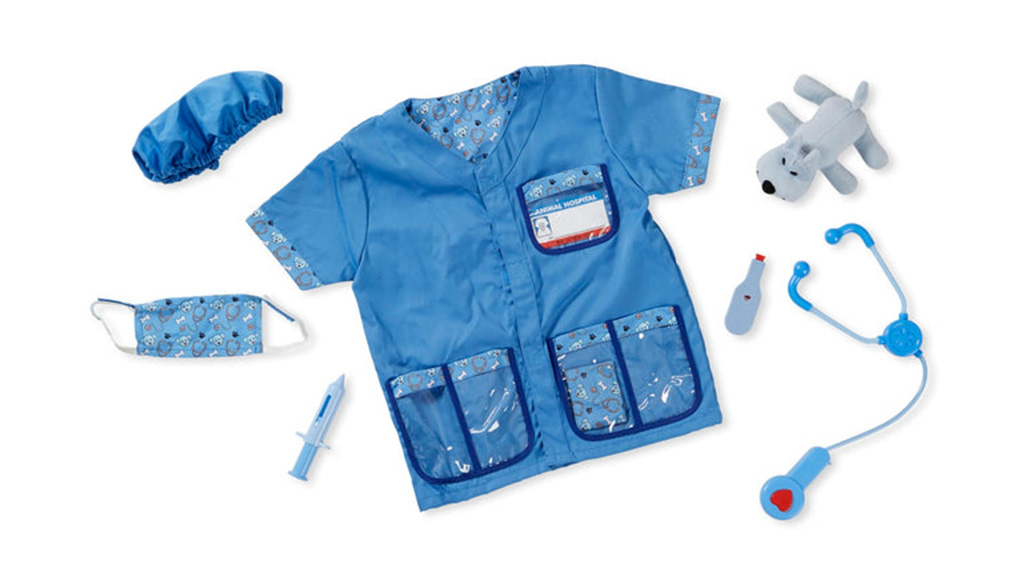 Die Kleinen können an einem imaginären Spiel teilnehmen, um sich um ihre imaginären Haustiere und Plüschtiere zu kümmern. Das Set enthält einen Mantel, eine Maske, eine Mütze, ein Thermometer, ein Stethoskop mit Soundeffekten, einen Verband, eine Spritze, einen Plüschhund und ein wiederverwendbares Namensschild. Dieses Set ist nicht nur unterhaltsam, sondern fördert auch die Empathie und Fürsorgefähigkeiten der Kinder.