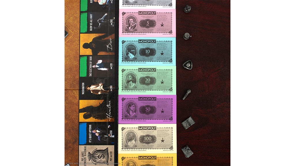 Die zum Spiel gehörenden Münzen und Banknoten zeigen Charaktere wie Angelica Schuyler, Hercules Mulligan, Marquis de Lafayette und Alexander Hamilton. Diese besondere Ausgabe bietet nicht nur Fans des Musicals, sondern auch Liebhabern von Brettspielen ein spannendes Erlebnis, da sie das klassische Spielprinzip mit einer einzigartigen, historischen Atmosphäre verbindet.