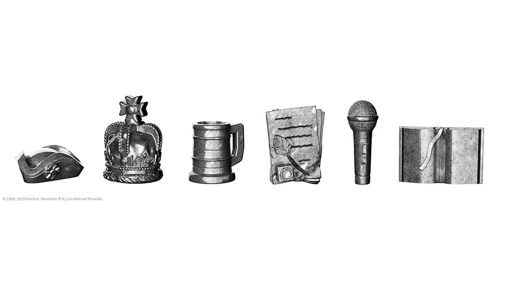 Neben den bekannten Spielfiguren enthält dieses Brettspiel weitere Elemente, die vom Broadway-Musical inspiriert wurden. Die Häuser und Hotels wurden hier durch Briefe und Federalisten-Schriften ersetzt, während die Gemeinschafts- und Ereigniskarten von Burr- und Hamilton-Karten abgelöst wurden.