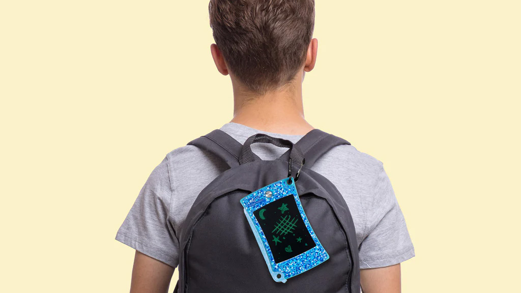 Der Schreibtablett ist das perfekte Reiseaccessoire — es ist leicht, lässt sich einfach an Taschen befestigen, benötigt kein Reinigungstuch für die Bildschirmreinigung und kann von Kindern stundenlang genutzt werden. Kinder können zeichnen, Spiele wie Tic-Tac-Toe mit ihren Geschwistern spielen, ihren Wortschatz und Mathematik üben und sich mit einem rosa, blauen oder lila glitzernden Accessoire ausdrücken. Der Stylus erfordert keinen großen Druck zum Arbeiten, aber wenn die Kinder noch nicht bereit sind, den Stylus zu halten, können sie auch mit ihren Fingernägeln zeichnen.