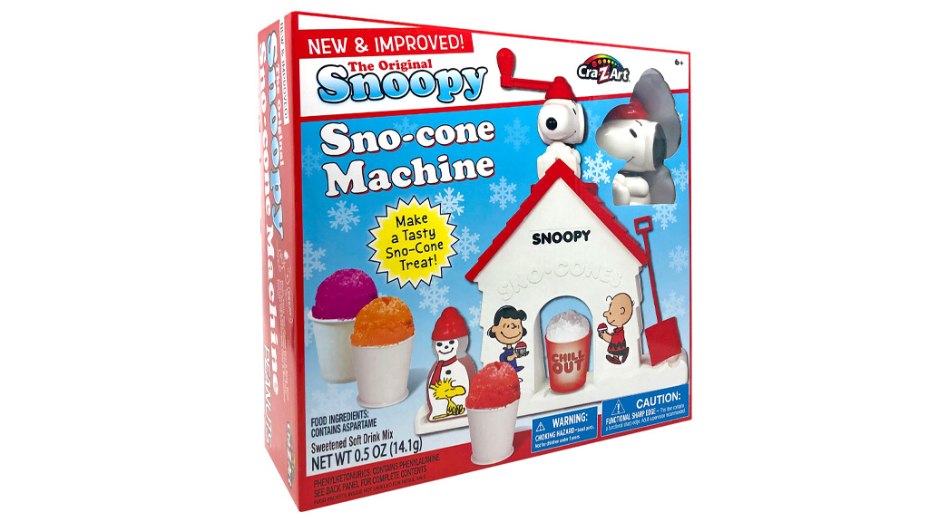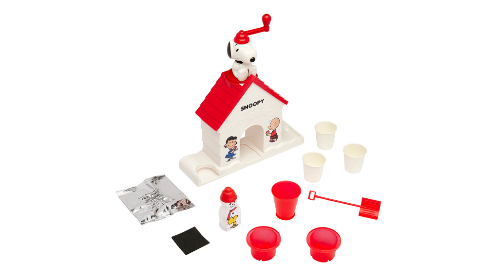 Eine Eismaschine ist eine einfache Möglichkeit für Kinder, ohne große Haushaltsgeräte eine erfrischende Sommerleckerei zuzubereiten. Das vertraute Peanuts-Thema ist ermutigend, sodass auch Kinder, die etwas Anleitung benötigen, Erfolgserlebnisse haben, wenn sie ihr eigenes Dessert zubereiten. Die Kinder lernen, ihre eigenen Sachen zu verwalten, da sie jedes Mal die mitgelieferten Eisformen verwenden müssen. Außerdem werden die Kinder im Bereich "Teilen" sicherer, da sie sich beim Drehen des "Snoopy"-Eisbrechers abwechseln.Die Eltern werden die Nostalgie eines vertrauten Produkts genießen, während die Kinder Energie verbrauchen, indem sie die Snoopy-Eismaschine drehen und Geduld lernen, da es eine Weile dauern kann, bis das Glas voll ist. Die Maschine ist für Kinder ab 6 Jahren konzipiert, aber auch jüngere Snoopy- (und Eis-) Fans können das Mischen der Aromapackungen, das Schaufeln des Eises und das Drücken der Sirupflasche auf das geraspelte Eis genießen. Dies hilft, die Feinmotorik der jüngeren Geschwister zu verfeinern, während das Drehen der Snoopy-Eismaschine die grobmotorischen Fähigkeiten der älteren Kinder entwickelt.