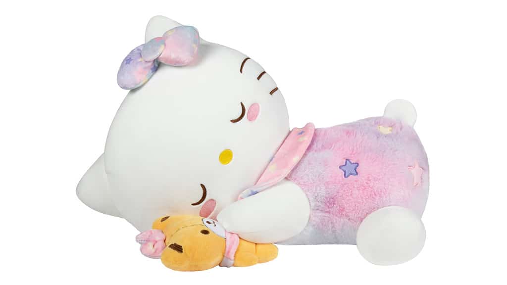 Dieser große, superweiche Plüsch von Jazwares stellt eine schläfrige Hello Kitty dar, die mit ihrem Lieblingsbären Tiny Chum ruht. Ihr Pyjama ist aus Sherpa-Material gefertigt, um maximalen Komfort zu gewährleisten!
