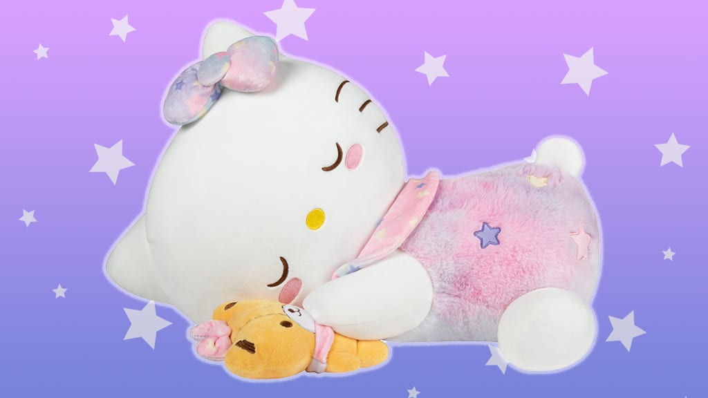 Die Kinder können sich mit diesem 45 cm großen Plüschtier, das aus Sherpa-Material gefertigt ist, auf das Schlafengehen vorbereiten. Auf dem Spielzeug ist Hello Kitty zu sehen, wie sie einschläft, während sie ihren Teddybären, Tiny Chum, umarmt. Dieses weiche und liebevolle Plüschtier ist der perfekte Begleiter für Gute-Nacht-Geschichten und die nächtliche Ruhe, da es den Kindern hilft, sich im Bett ruhig und sicher zu fühlen. Das Sherpa-Material ist besonders angenehm zu berühren und trägt somit noch mehr zu einem komfortablen Schlaf bei.