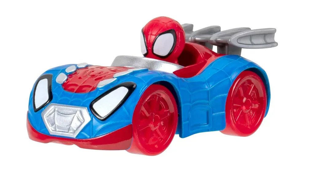 Jazware Spidey und seine fantastischen Freunde Metall-Stadtstrecke ist ein Spielset, inspiriert von der Show Spidey und seine fantastischen Freunde. Es ist nach einem typischen New Yorker Gebäude und Straße gestaltet und enthält zwei Metallspielzeugautos, eines mit Miles Morales am Steuer und das andere mit Spidey.