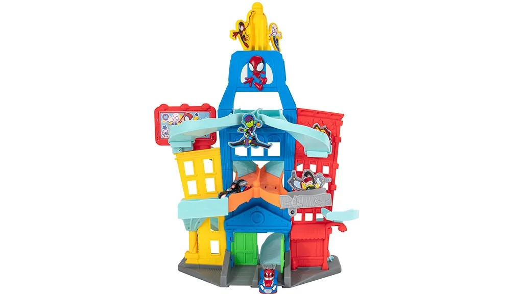 Kinder können den Eltern beim Zusammenstellen des Spielsets helfen, aber letztendlich muss ein Erwachsener es zusammenbauen – es ist einfach zu montieren und erfordert keine Werkzeuge. Das 24 Zoll hohe Spidey und seine Freunde Metallstadt-Spielset ist kein Spielzeug für die Straße, aber die Kinder können es bei Bedarf leicht von einem Raum in den anderen tragen. Es gibt keinen separaten Stauraum für die Fahrzeuge, aber die Kinder können sie am Ende der Spielzeit hinter den Ladenfronten platzieren.