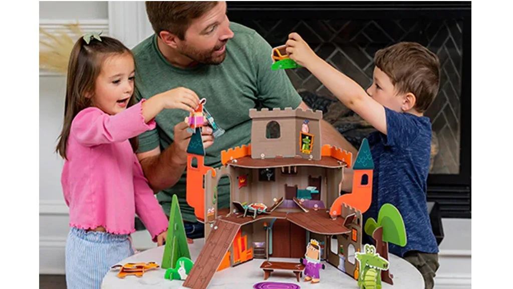 Wir lieben es, dass dieses Spielset Nachhaltigkeit mit Unterhaltung kombiniert! Die langlebige, umweltfreundliche Papierkonstruktion bedeutet, dass das gesamte Spielset recycelbar ist. Die Kinder werden es lieben, das Set wie ein Puzzle zusammenzubauen, was die Feinmotorik und Problemlösungsfähigkeiten fördert. Verschiedene Charaktere und Szenen, von mutigen Rittern bis zu mystischen Drachen, bieten endlose Möglichkeiten für kreatives Geschichtenerzählen. Außerdem ist es leicht zu verstauen und zu transportieren, was es perfekt für Spielnachmittage oder Besuche bei der Großmutter macht.