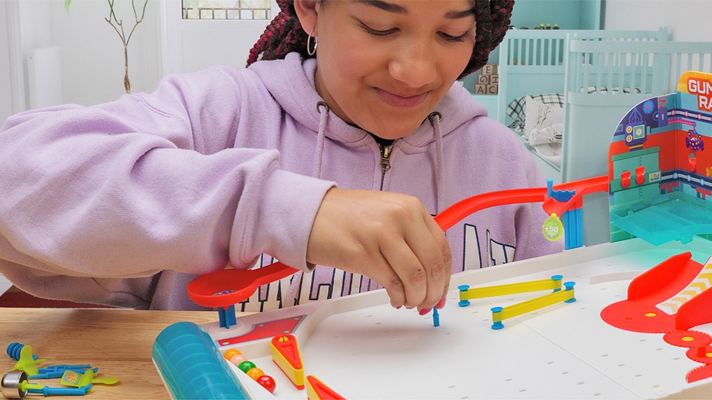 Das klassische Flipperspiel erhält eine sehr süße Wendung im neuesten Set von Thames & Kosmos. Das Flipper-Bauset: Gumball Rally kombiniert Bildungsspaß mit Spielgeschick, während die Kinder eine Maschine bauen, die essbare Kaugummis als Flipperkugeln verwendet. Die Kinder können die Hindernisse nach Belieben anordnen und beim Spielen Punkte sammeln, indem sie die Kaugummis auf die Zielpunkte lenken.