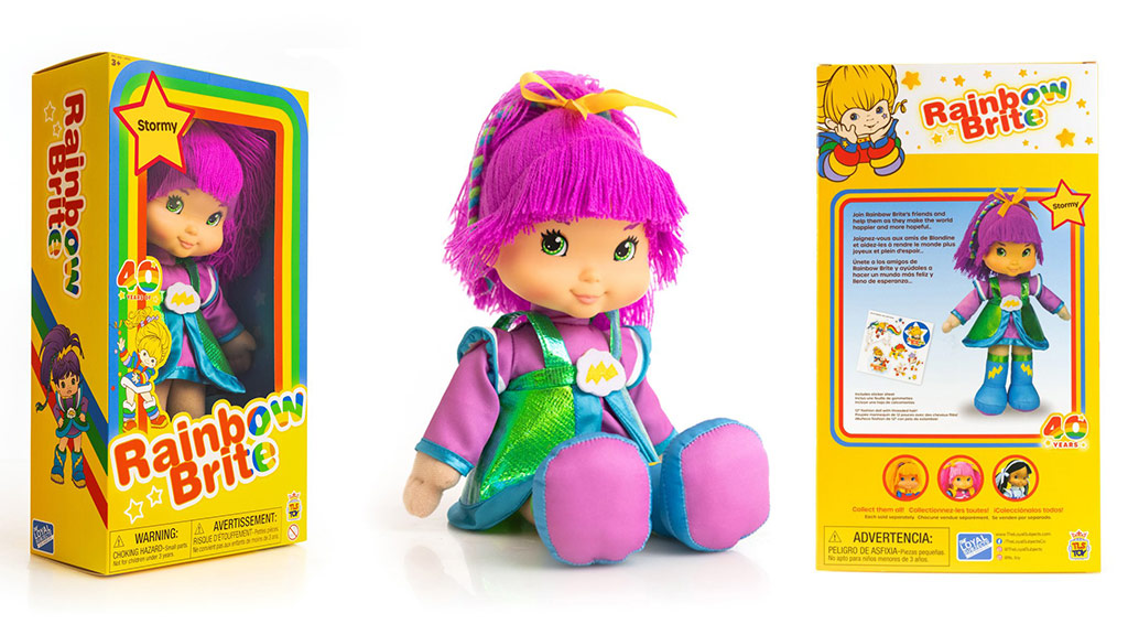 Rainbow Brite und ihre Freunde mit weichen Körpern und bunten Kleidern sind zurück, ähnlich wie die Versionen aus den 1980er Jahren, aber nach modernen Standards hergestellt. Kinder können Rainbow Brite, Stormy und Tickled Pink als 30 cm große Puppen sammeln, die perfekt sind, um sie überallhin mitzunehmen.