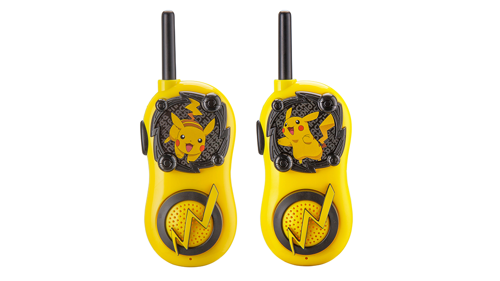 Die Kleinen können mit ihren Freunden mit diesen Pokémon-Themen-Walkie-Talkies von eKids sprechen. Das Set enthält zwei gelb-schwarze Walkie-Talkies, die von Pikachu inspiriert sind und mit einem Blitz auf dem Lautsprecher verziert sind, sowie Mini-Pokébälle, die die Pokémon-Grafik umgeben. Kinder ab 3 Jahren können das Gerät mit dem Ein-/Ausschalter, der Sprechtaste, dem Lautsprecher und dem Mikrofon verwenden. Durch Drücken und Halten der Sprechtaste können die Kinder geheime Nachrichten über eine Entfernung von mehr als 150 Metern senden.