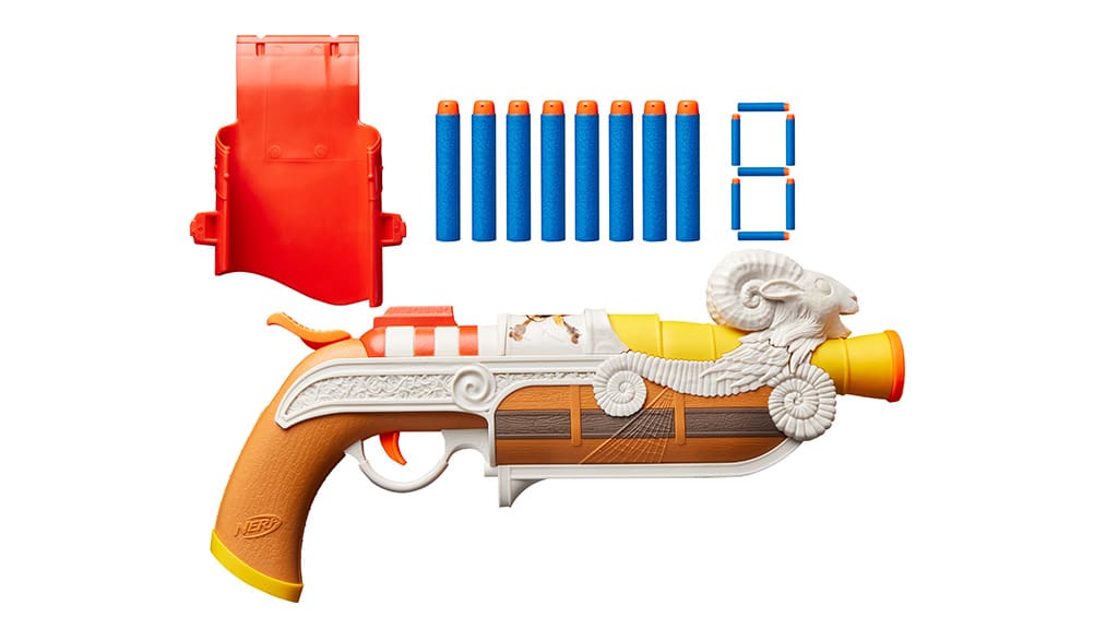 Das erste Produkt der neuen Kollektion, Luffy -zertifiziert, ist der NERF One Piece Going Merry Blaster. Dieser Schaumstoffblaster wird mit acht NERF Elite -Darts geliefert und verfügt über ein ansteckbares Holster, sodass Kinder ihn ganz einfach zu all ihren Piratenabenteuern mitnehmen können. Die Bedienung des Blasters ist äußerst einfach: Einfach einen Dart in den Lauf laden, den Hebel nach hinten ziehen und mit dem Betätigen des Abzugs kann das Projektil schon in die Luft geschossen werden.