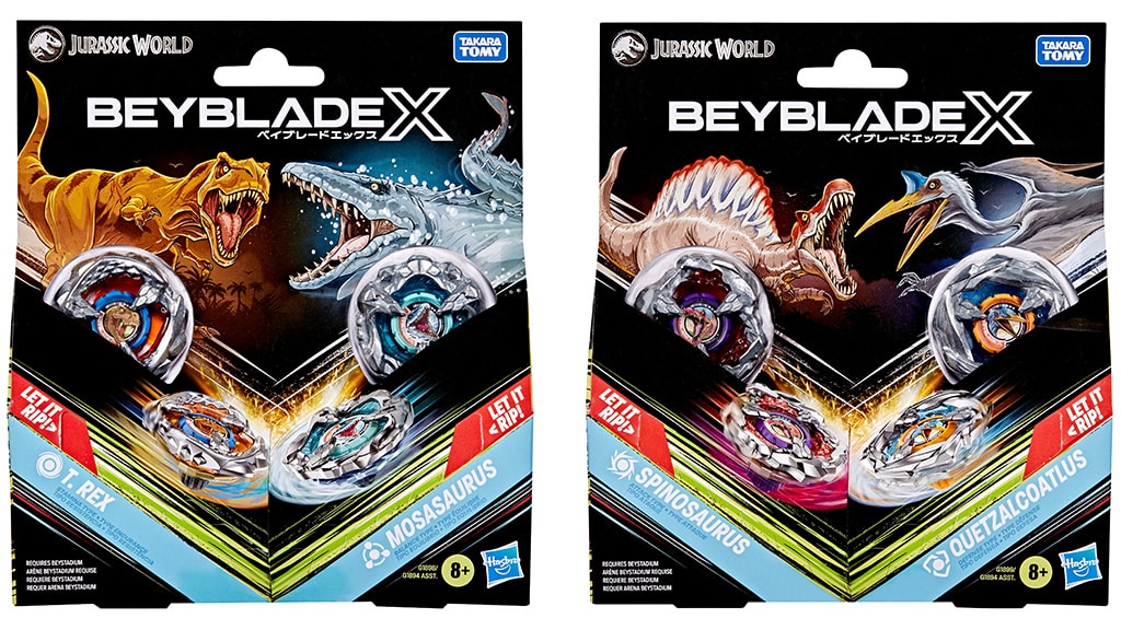 Ab jetzt können Kinder dank der Zusammenarbeit von Hasbro Beyblade X und Jurassic World auch prähistorische Abenteuer zu ihren Beyblade-Kämpfen hinzufügen. Der Kampf der Dinosaurier kann mit zwei neuen, mehrteiligen Sets Teil des Spiels werden, in denen der T. rex gegen den Mosasaurus und der Spinosaurus gegen den Quetzalcoatlus antritt. Diese Sets machen das Beyblade-Erlebnis noch spannender und abwechslungsreicher, denn die Kinder können mit Hilfe ihrer Lieblingsdinosaurier actionreiche Kämpfe erleben und dabei ihre Fantasie und strategisches Denken weiterentwickeln.Diesen Herbst werden die neuesten Beyblade-Spiele und Stadion-Spielsets in die Spielzeugsammlungen der Kinder aufgenommen. Während wir auf neue, spannende Abenteuer warten, können Familien noch mehr Beyblade-Produkte entdecken. Diese Spiele sind nicht nur unterhaltsam, sondern fördern auch die Geschicklichkeit, das strategische Denken und den Wettbewerbsgeist. In den Beyblade-Arenen können Kinder spannende Kämpfe mit ihren Freunden austragen und dabei immer neue Tricks erlernen. Die Beyblade-Spiele sind die perfekte Wahl für alle Altersgruppen, die Herausforderungen und die Freude am gemeinsamen Spielen lieben.