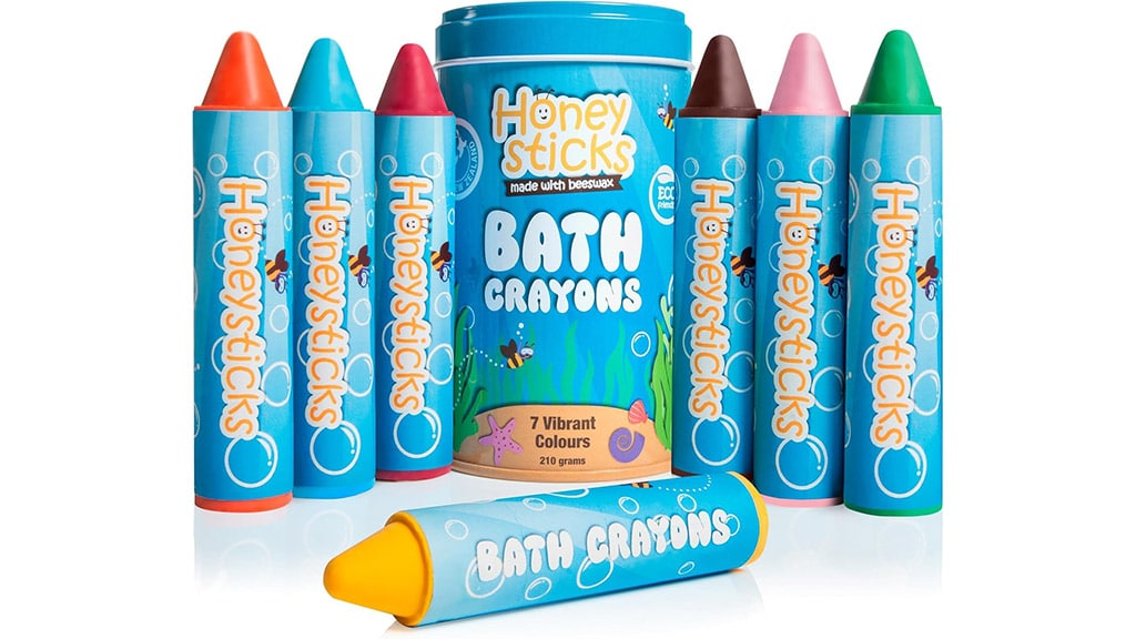Nachhaltige Bade-Spielzeuge? Du kannst auf uns zählen, wir sind begeistert! Dieses Set enthält sieben Kreiden, die die Badezeit aufpeppen. Jede Kreide besteht aus ungiftigem, duftfreiem Bienenwachs. Kinder jeden Alters können der Badewanne etwas Farbe verleihen, an die Wände malen und ihrer Kreativität freien Lauf lassen. Wenn die Badezeit vorbei ist, lassen sich die Zeichnungen leicht abwischen.