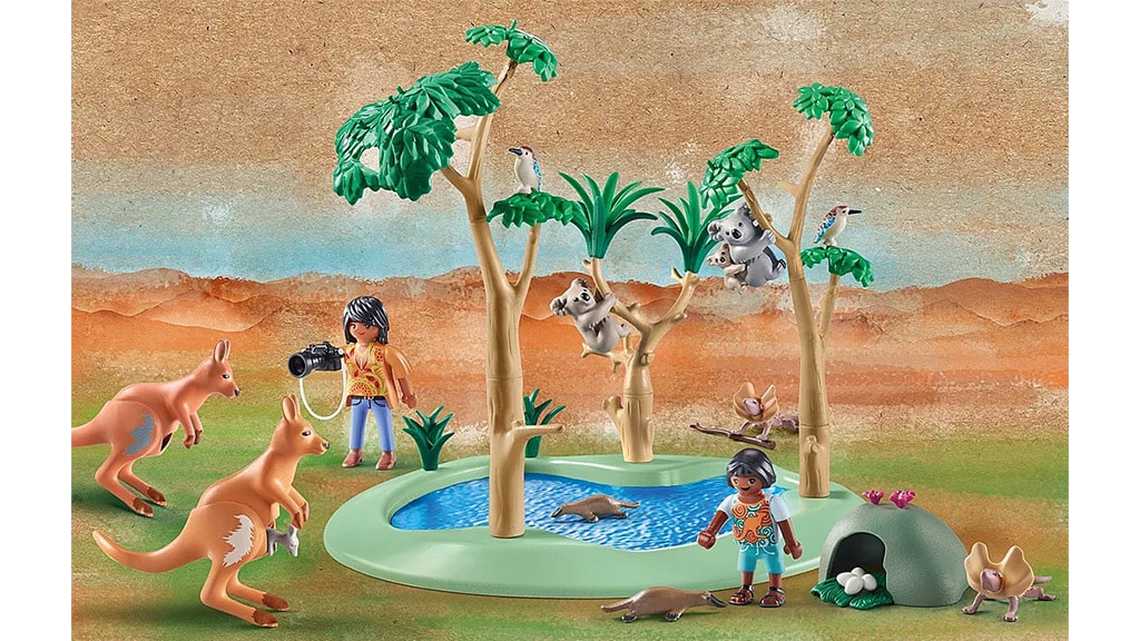 Dieses Spielset lädt Kinder zu einem tierischen Abenteuer im australischen Outback ein. Das Set enthält zwei Minifiguren, Kängurus, Koalas, Kragenechsen und andere niedliche australische Wildtiere, die sich um eine Wasserstelle versammeln. Es besteht zu über 80 % aus recyceltem Kunststoff, sodass Kinder dabei helfen können, die Erde zu retten, während sie ihre Wunder entdecken!