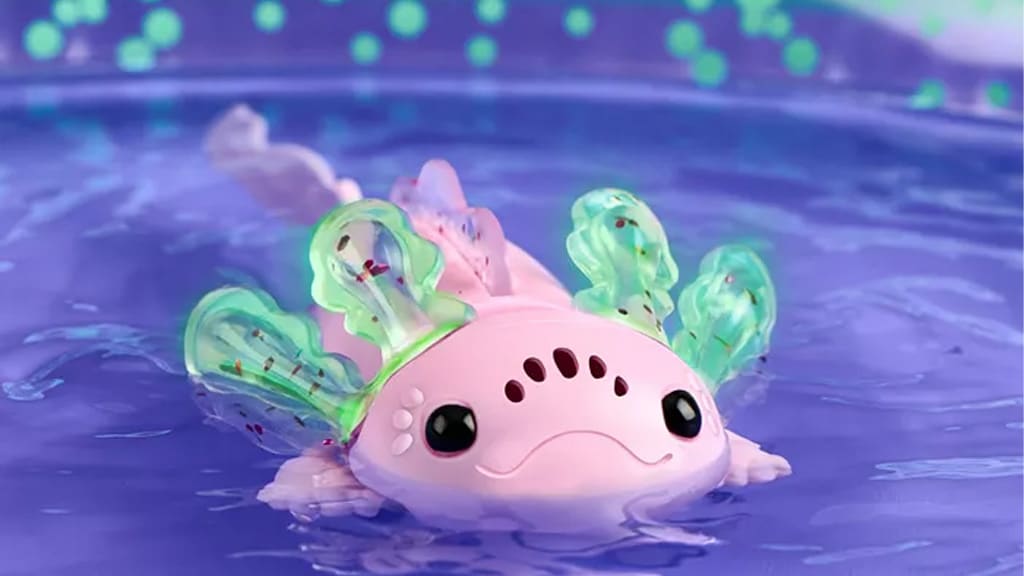 Wenn die Kinder den Kopf streicheln (und den Bauchsensor aktivieren, indem sie ihn in der Hand halten), zeigt der Axolotl die Stimmung des Kindes in verschiedenen Farben an. Ein Farb-Stimmungs-Leitfaden ist ebenfalls verfügbar — Blau bedeutet müde, Lila bedeutet glücklich, Grün bedeutet albern, und so weiter. Wenn die Kinder nur den Kopf streicheln, ohne den Bauchsensor zu berühren, singt der kleine Axolotl ein Lied. Das Spielzeug kann sich auch im Wasser in einem aufblasbaren Pool bewegen.Fingerlings Baby Axolotl sind unglaublich niedlich und reaktiv, sodass Kinder das Gefühl haben können, ein echtes Haustier zu haben – ohne das Chaos! Kinder ab 5 Jahren können lernen, wie sie das Spielzeug streicheln und abwechseln, indem sie die Schwanzbewegungen beobachten, die Geräusche hören und herausfinden, in welcher Stimmung der Axolotl ist. Familien können mit dem Spielzeughaustier interagieren, während es im Pool schwimmt, oder sich um ihren Freund kümmern, ohne ein mit Wasser gefülltes Becken zum Spiel hinzuzufügen.