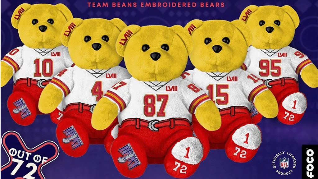 FOCO készül a játéknapra egy hivatalosan engedélyezett Super Bowl 58 Team Beans Bears kollekcióval. A gyűjtemény 14 medvét tartalmaz mindenféle raj...